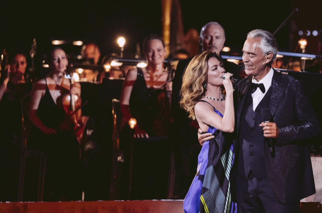 Tonight, iconic Italian tenor Andrea Bocelli’s three-day concert event, Andrea Bocelli 30: The Celebration, concluded in Tuscany. The final night was nothing short of spectacular, with Bocelli delivering one captivating performance after another with special guests Shania Twain, Brian May, Sofia Vergara, David Foster & Katharine McPhee, Matteo Bocelli, Amos Bocelli, Nadine Sierra, Lauren Daigle, Giorgia, Franco Vassallo, and Eros Ramazotti.