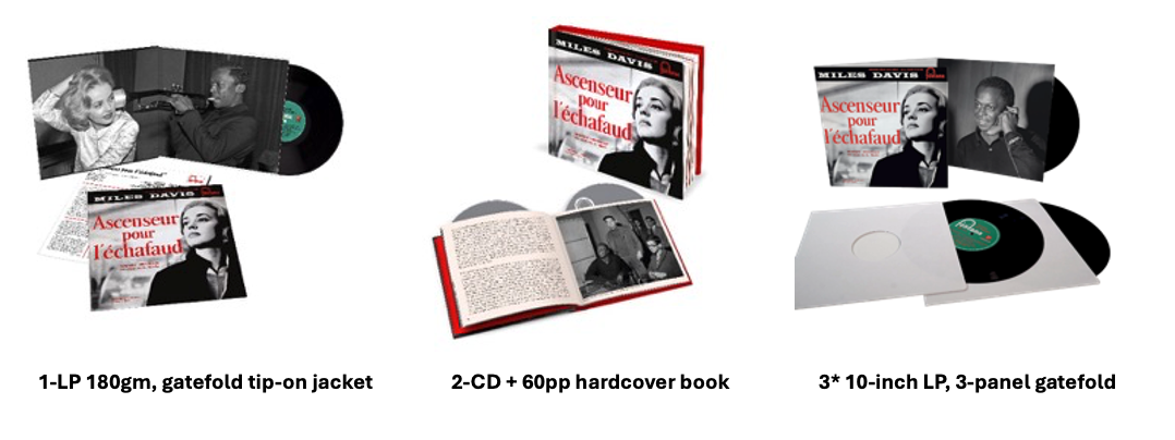 The reissue programme, available from May 22, presents the recording across three deluxe formats. A 180g vinyl LP reproduces the original album in a gatefold tip-on sleeve with an English translation of Boris Vian’s original liner notes. A deluxe 3x 10” vinyl edition expands the release to include the original soundtrack alongside the complete session takes from the December 1957 recordings, presented in a three-panel gatefold with Franck Bergerot’s essay A Present from Miles Davis to Louis Malle. A limited edition 2-CD set brings together the original album and all surviving takes from the sessions of December 4 and 5, 1957, accompanied by a 60-page hardcover book featuring notes by Ashley Kahn and Franck Bergerot.