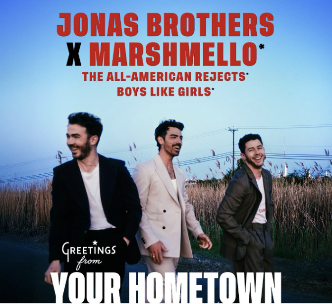 Featuring their previously released fan favorite single “Love Me To Heaven,” the forthcoming Greetings From Your Hometown is a return to the brothers’ New Jersey roots and early sonic influences while growing up—celebrating 20 unforgettable years as a band. Following the album release, the Jonas Brothers will embark on their 2025 JONAS20: Greetings From Your Hometown tour, kicking off with a hometown show at MetLife Stadium on August 10th. Featuring a dynamic, career-spanning live show that highlights every chapter of the Jonas Brothers’ 20 year journey and the band’s evolution, including solo projects like Nick Jonas & the Administration, Nick Jonas’ solo career, Joe Jonas’ solo career, and DNCE. Select dates will feature special guests Marshmello, The All-American Rejects, and Boys Like Girls. See the full list of tour dates below, and tickets available now at ticketmaster.com.