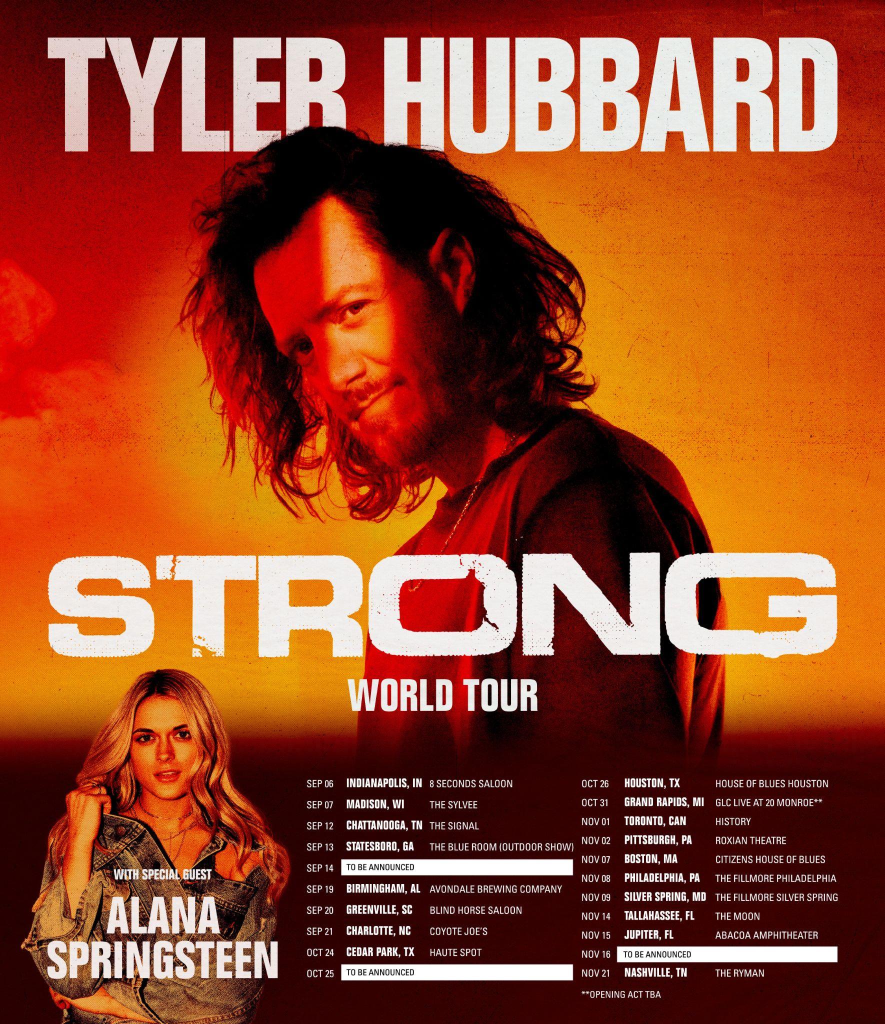 The tour kicks off in Indianapolis on Sept. 6 and culminates with a hometown show at Nashville’s historic Ryman Auditorium on Nov. 21. Alana Springsteen will serve as direct support for the leg. Tickets are on-sale this Friday, May 3, at 10 AM local time, here: tylerhubbardofficial.com/tour